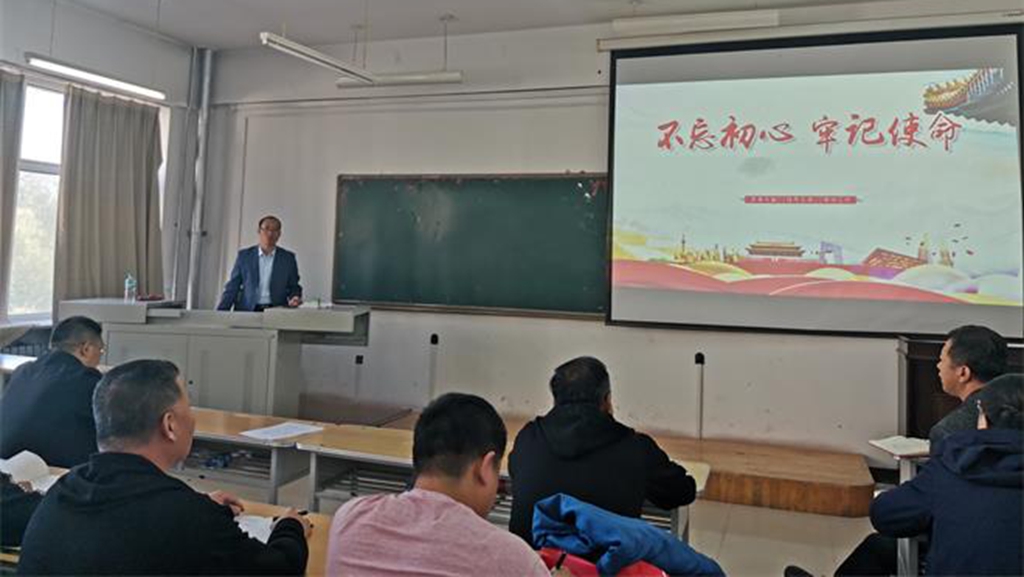 科研处副处长、博士、硕士生导师伊全胜教授,为公共外语教研部、马克思主义学院的师生党员作了题为《践行初心和使命 推动科研工作高质量发展》的辅导报告。伊全胜从“不忘初心、牢记使命”的科学内涵、现阶段为什么要反复提“不忘初心、牢记使命”、共产党员如何践行“不忘初心、牢记使命”、“不忘初心、牢记使命怎样做”以及共产党员如何不忘初心、牢记使命推进科研工作高质量发展五个方面进行了宣讲,引导师生党员把开展主题教育的落实、科研工作的高质量发展与科研能力的提升等各项工作紧密结合起来,奋力推进科研工作实现新突破新进展新跨越。