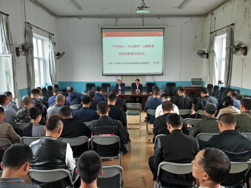 文学与历史文化学院副院长、硕士生导师黄志强副教授,为食品与生物工程学院、生命科学与农林学院(黑龙江省齐齐哈尔林业学校)的师生党员作了题为《弘扬红船精神 传承初心使命》的辅导报告。黄志强首先介绍了开展“不忘初心、牢记使命”主题教育的重大意义,随后重点讲述了中国共产党精神谱系的重要组成部分--红船精神的产生及其内涵。围绕建党实践铸就伟大的红船精神、红船精神及其内涵、红船精神的研究与践行等方面进行了深入的阐释和解读。指出“红船精神”内涵丰富、思想深邃,历久弥新、常学常新,是我们共产党人薪火相传的精神源泉、红色基因。
