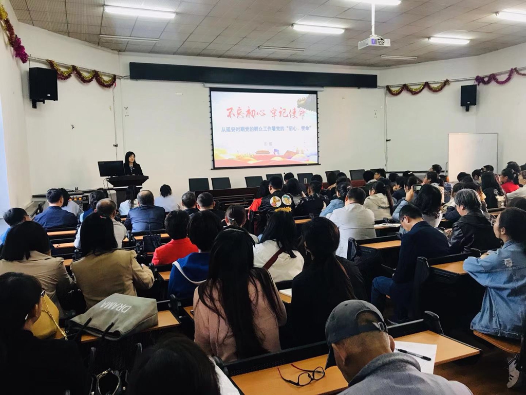 校党委常委、党委宣传统战部长、硕士生导师王晓梅教授,为经济与管理学院、文学与历史文化学院(新闻传播学院)的师生党员作了题为《不忘初心 牢记使命 做好意识形态工作》的辅导报告。王晓梅以严谨的逻辑、大量的实例,围绕为什么要开展“不忘初心、牢记使命”主题教育;开展“不忘初心、牢记使命”主题教育的根本任务、总要求、具体目标是什么;怎样提升意识形态工作能力等三方面内容,从国内到国际、从历史到时势,脉络清晰、具体生动地阐释了开展“不忘初心、牢记使命”主题教育的必要性,高校师生提升意识形态工作能力的紧迫性和重要性。