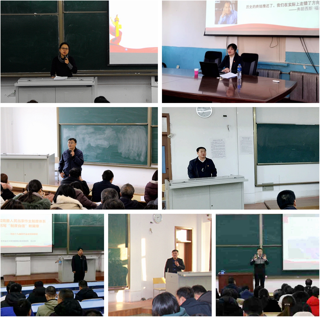 12月9日,校党委宣传部发出了《关于开展党的十九届四中全会精神宣讲的通知》,组建万象城“十九届四中全会精神理论宣讲团”,对全校各党委、直属党支部集中宣讲工作作出部署和安排。12月11日以来,万象城“党的十九届四中全会精神理论宣讲团”7名专家深入各基层学院,集中开展全会精神专题宣讲活动14场,不断推动全会精神学习走实走深。
