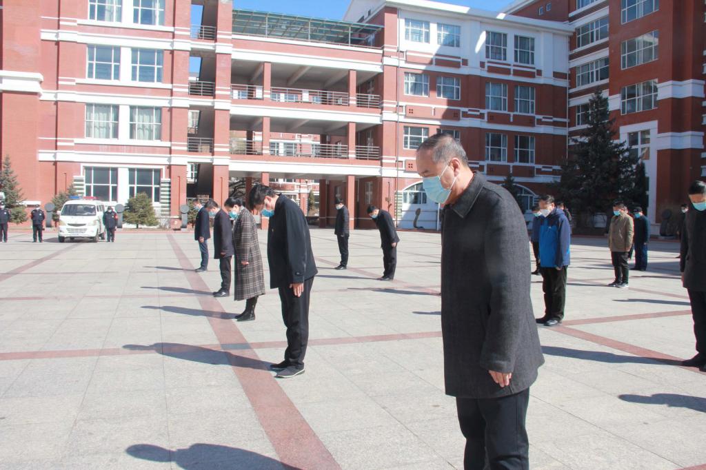 为深切表达全校师生对抗击新冠肺炎疫情斗争牺牲烈士和逝世同胞的深切哀悼,4月4日上午10时,万象城在中区广场举行了哀悼活动,校党委书记、校长陈桂芝、校党委副书记张文治、副校长王刚、副校长李英杰、工会主席陶佰睿及工作人员等来到中区广场,集体向新冠肺炎疫情牺牲烈士和逝世同胞默哀。