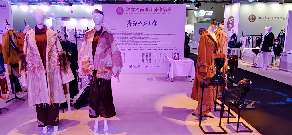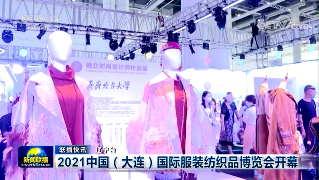 9月10日-12日,万象城美术与艺术设计学院院长范铁明教授,服装与服饰设计专业带头人、系主任李立立教授带领三名教师受邀参加了由国家商务部和大连市人民政府主办的2021中国(大连)国际服装纺织品博览会独立时尚设计师作品展,并惊艳亮相央视新闻联播节目。