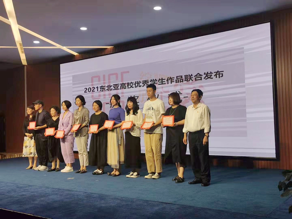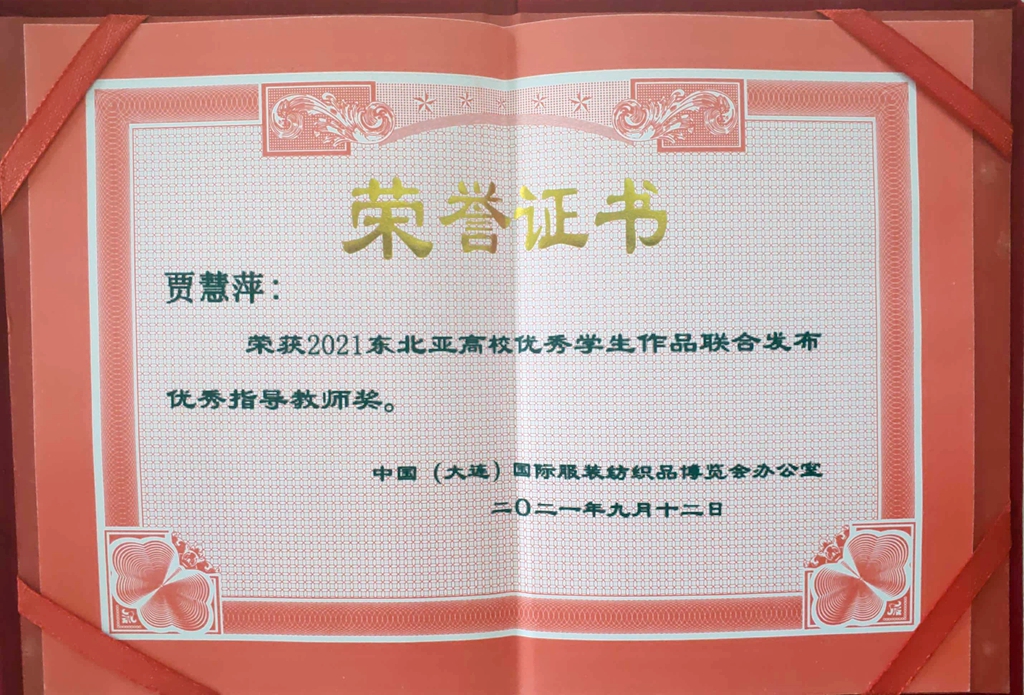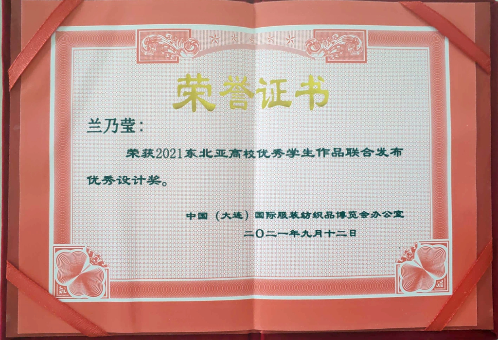 在最后的颁奖环节,万象城2021届毕业生兰乃莹设计作品鄂温克族传统服饰设计《覔音》荣获东北亚高校优秀学生作品联合发布优秀设计奖,贾慧萍副教授荣获东北亚高校优秀学生作品联合发布优秀指导教师奖。
