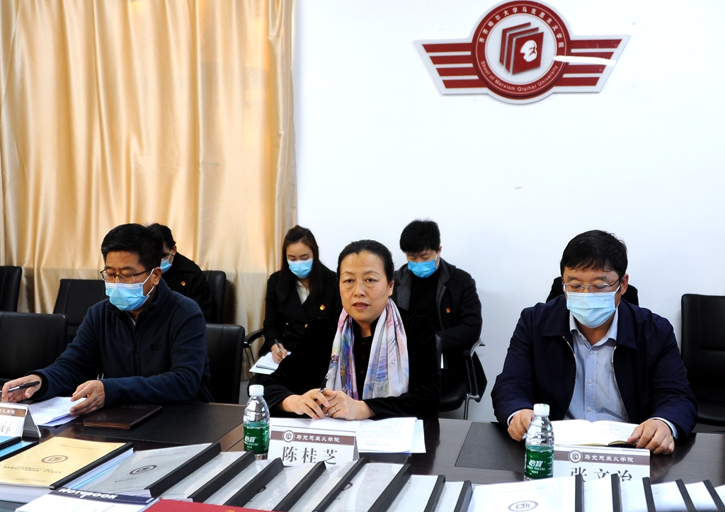 陈桂芝认真听取了汇报,并对马克思主义学院党委党的建设和思想政治工作给予了高度评价。她指出,思想政治理论课是落实立德树人根本任务的关键课程。思想政治理论课教师作为“关键课程”的“关键主体”,责任重大,使命光荣。学院党委要围绕省级重点马院建设目标任务,进一步加强思想建设,“在马言马、懂马信马”,讲好思政课,切实把思政课打造成为学生真心喜爱、终身受益的“金课”;要进一步加强政治建设,发挥政治功能,强化意识形态工作;要进一步加强队伍建设,以习近平总书记在学校思想政治理论课教师座谈会上提出的“六要”要求为标准,打造一支政治强、情怀深、思维新、视野广、自律严、人格正的高校思政教师队伍。
