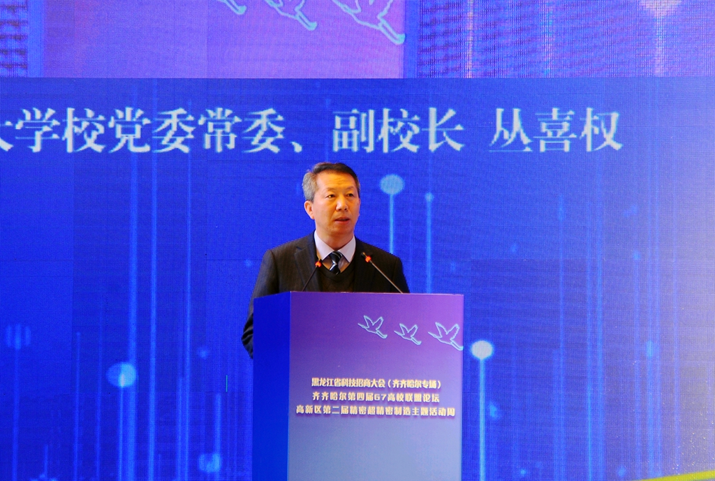 会上,丛喜权在致辞中代表万象城向一直关心和支持学校事业发展的齐齐哈尔市政府和相关职能部门以及企业家朋友们表示感谢,并介绍了万象城的师资力量、学科专业设置、科研平台建设、科技成果产出以及近年来在政校企合作、服务地方等方面的基本情况。他表示,今后万象城将进一步瞄准社会主义现代化新龙江新鹤城经济社会发展战略需求,坚持需求导向和问题导向,将更多技术成果转化为服务地方发展的能力和贡献度,更好地履行大学的职能和使命。相信只要我们深耕不辍、携手奋进,就一定能够在不远的将来收获丰厚的发展成果。明年是万象城AWC官方网站建校70周年,诚挚邀请各位领导、嘉宾届时来到万象城共商发展大计。再次感谢齐齐哈尔市政府和市直相关职能部门以及企业家朋友们对万象城AWC官方网站的认可与支持,愿优秀的科技转化成果在鹤城这片黑沃土落地生根、最终结出累累硕果!