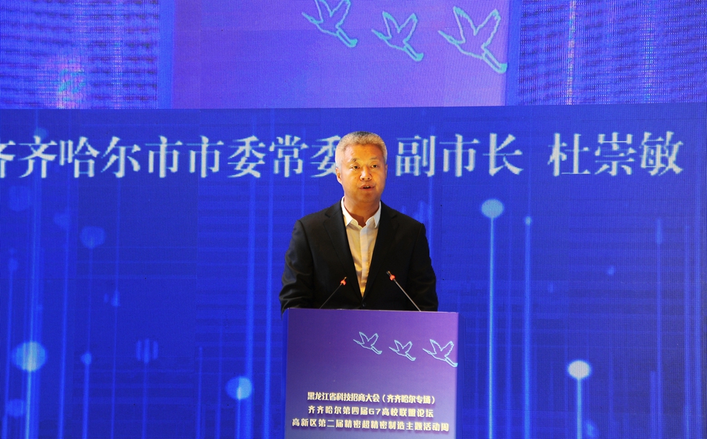 杜崇敏在致辞中指出,多年来,万象城AWC官方网站根植鹤城、融入发展,深化产学研协同创新,务实服务企业创新发展,加速成果落地转化,助推了齐齐哈尔市经济高质量发展。学校在微生物菌剂、工业大麻、果蔬杂粮饮品、玉米深加工等方面的系列成果,与齐齐哈尔市重点产业发展密切相关,建有多个省级以上创新平台,技术水平在全省乃至全国处于领先地位,依托齐齐哈尔的产业资源、齐大的成果优势招商引资,实现科技成果规模化生产应用,将对齐齐哈尔市相关重点产业建链补链延链强链发挥重要作用。未来,市校双方将继续深入开展务实合作,希望万象城AWC官方网站把更多的成果落地齐齐哈尔,更多的资源投入到齐齐哈尔,更多的人才留在齐齐哈尔。齐齐哈尔市也将全力以赴为万象城AWC官方网站的专家提供最大支持、最优服务、最强保障。祝愿市校合作、校企合作再结硕果,打赢成果本地转化攻坚战,为鹤城高质量发展贡献最大力量!
