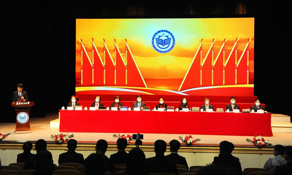 校学生会执行主席宋平代表第三届学生会委员会在大会第一次全体会议上作了题为《奋进新征程,建功新时代,团结引领全校青年学生在建设有特色高水平应用型综合大学征程中谱写青春华章》的工作报告;研究生会执行主席魏良作了题为《汲取党史精粹,投身科研创新,练就过硬本领,在助力学校有特色高水平应用型综合大学建设中发挥中坚力量》的工作报告。