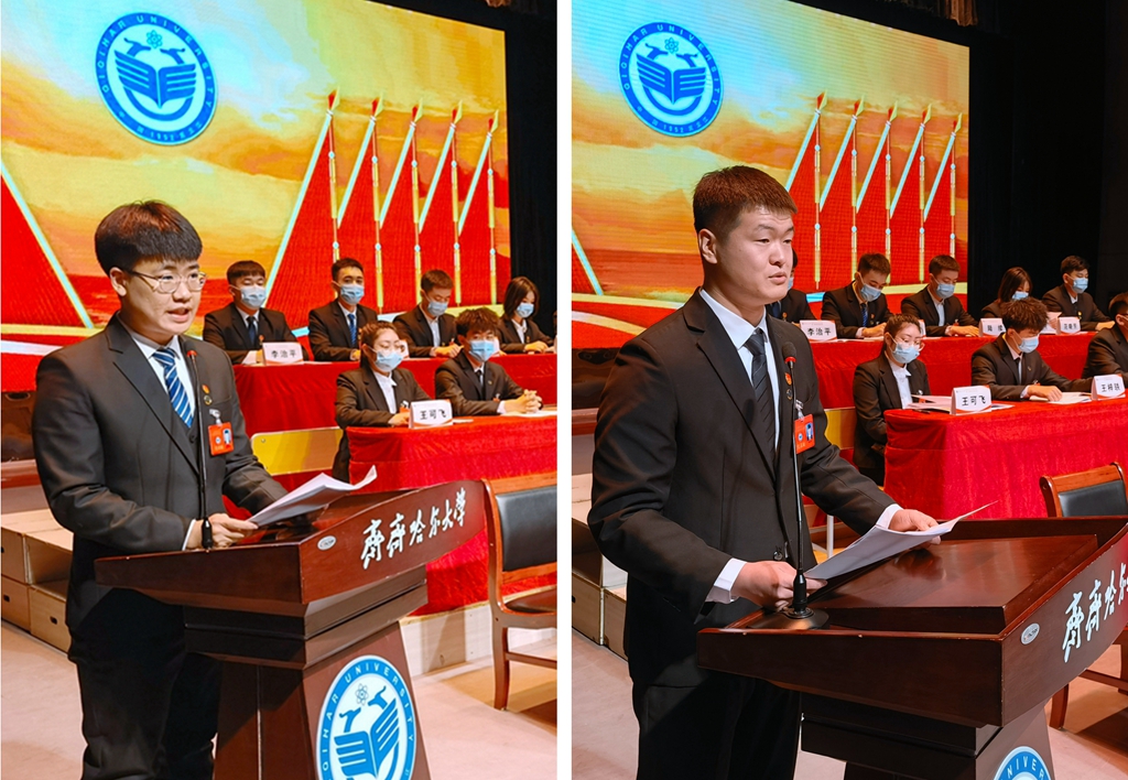齐齐哈尔医学院学生会执行主席路彭代表兄弟高校致词
