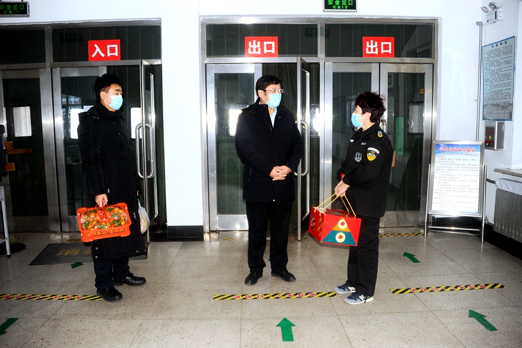 校领导分别走访了中区校门、学校110中心、办公楼门卫室、总值班室、保卫处值班办公室;学生公寓、西区第一教学楼门卫室;中区变电所、锅炉房;东区大门、西区大门、西二区大门、林校区大门等处,代表学校向一线值班值守工作人员为保障学校寒假期间各项工作稳步推进所付出的辛勤劳动表示感谢,为他们送去了慰问品,向他们提前拜年,祝大家在新的一年万事如意,幸福安康。