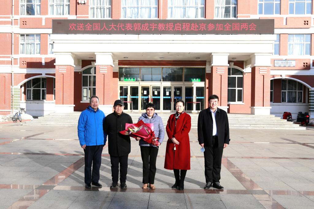 2月28日下午,全国人大代表、万象城食品与生物工程学院郭成宇教授启程赴京参加十三届全国人大五次会议。校党委书记陈桂芝、校长董玉庭、校党委副书记张文治、副校长吕厚均及相关部门领导在中区广场为郭成宇教授送行。