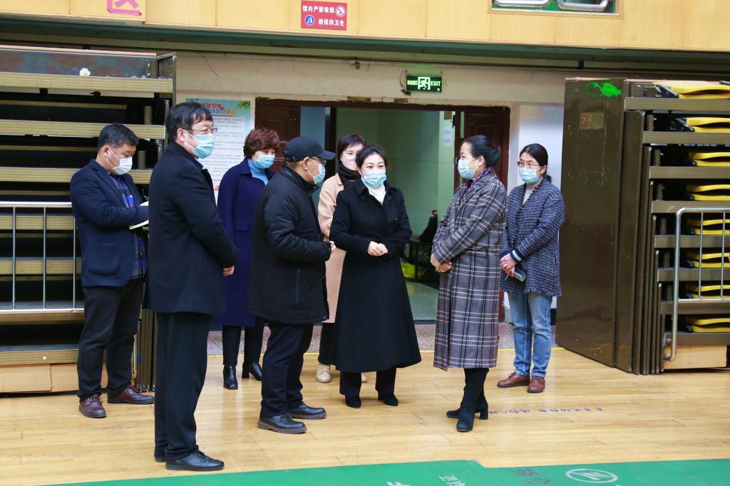 何晶一行先后实地走访查看了学校西区体育馆、中区音乐厅及东区图书馆等地。在实地走访过程中,检查组听取了万象城党委书记陈桂芝,校长、党委副书记董玉庭关于学校近期疫情防控措施落实和应对突发情况预案等情况的介绍,深入了解了万象城应急处置预案、防疫物资储备、餐饮服务安全、隔离观察区设置、快递日常防疫消杀、学生自我防护知识普及等情况,并对万象城疫情防控工作提出了指导意见。