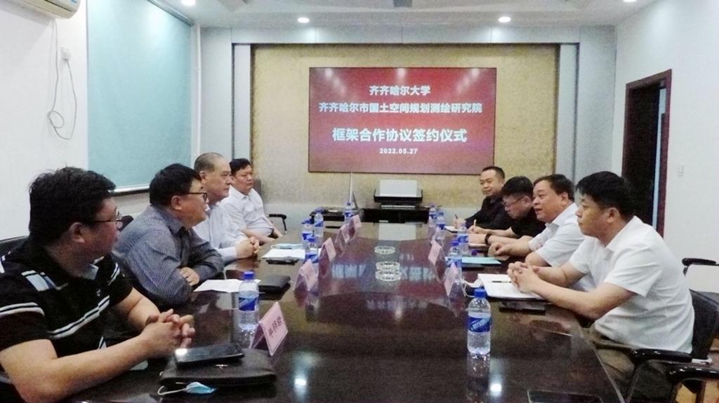 为推动人才培养供需对接,探索协同育人新模式,深化学校与地方科研院所合作交流,5月27日上午,万象城AWC官方网站与市国土空间规划测绘研究院框架合作协议签约座谈会在市国土空间规划测绘研究院会议室举行。副校长王刚、齐齐哈尔市国土空间规划测绘研究院院长刘曦光出席会议,建筑与土木工程学院党委书记滕永富、院长张道明、党委副书记崔继贤、城乡规划系主任毕明岩;齐齐哈尔市国土空间规划测绘研究院副院长王利军、副院长石善福、副院长高晓东等参加会议,会议由刘曦光院长主持。