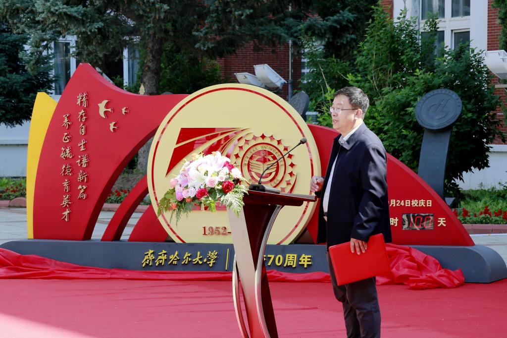 峥嵘七秩,弦歌不辍。盛事如约,佳期将至。6月16日上午,学校以线下典礼线上直播的方式在中区广场举行了建校70周年倒计时100天启动仪式。校领导陈桂芝、董玉庭、齐宏伟、张文治、王刚、丛喜权、张树军、李奇楠、陶佰睿出席仪式,学校各单位、各部门主要负责人及校友代表、教师代表、志愿者代表在现场参加了启动仪式,仪式由副校长丛喜权主持。
