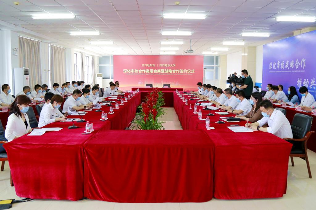 齐齐哈尔市委书记王刚,市委副书记、市长沈宏宇,市委副书记何晶,市委常委、组织部长李晨华,市委常委、秘书长谢广全,市委常委、市政府副市长刘刚;校党委书记陈桂芝,校长、党委副书记董玉庭,党委副书记张文治,副校长、党委常委丛喜权,副校长、党委常委张树军出席本次高层会商。会议由董玉庭主持。