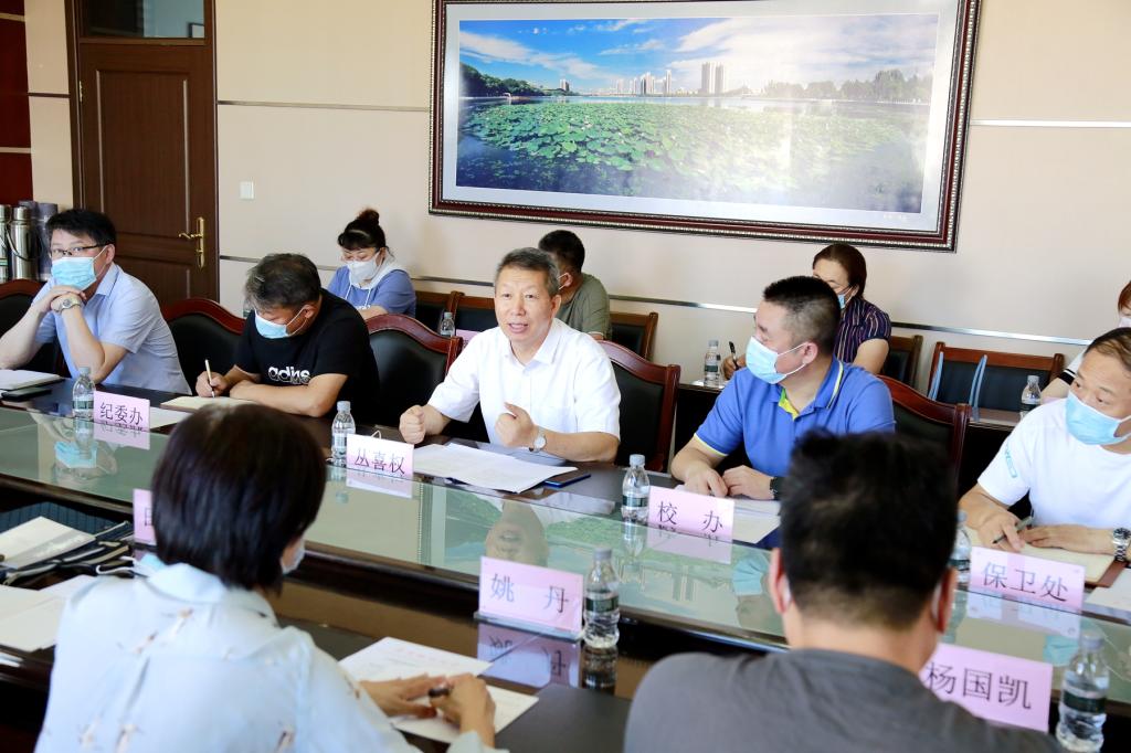 听取汇报后,田宇一行分为两组,详细查阅了学校相关工作预案,并实地踏查了学校卫生所、隔离观察区、购物中心、学生公寓等场所,对校园内疫情防控重点部位和关键节点进行了全面检查。