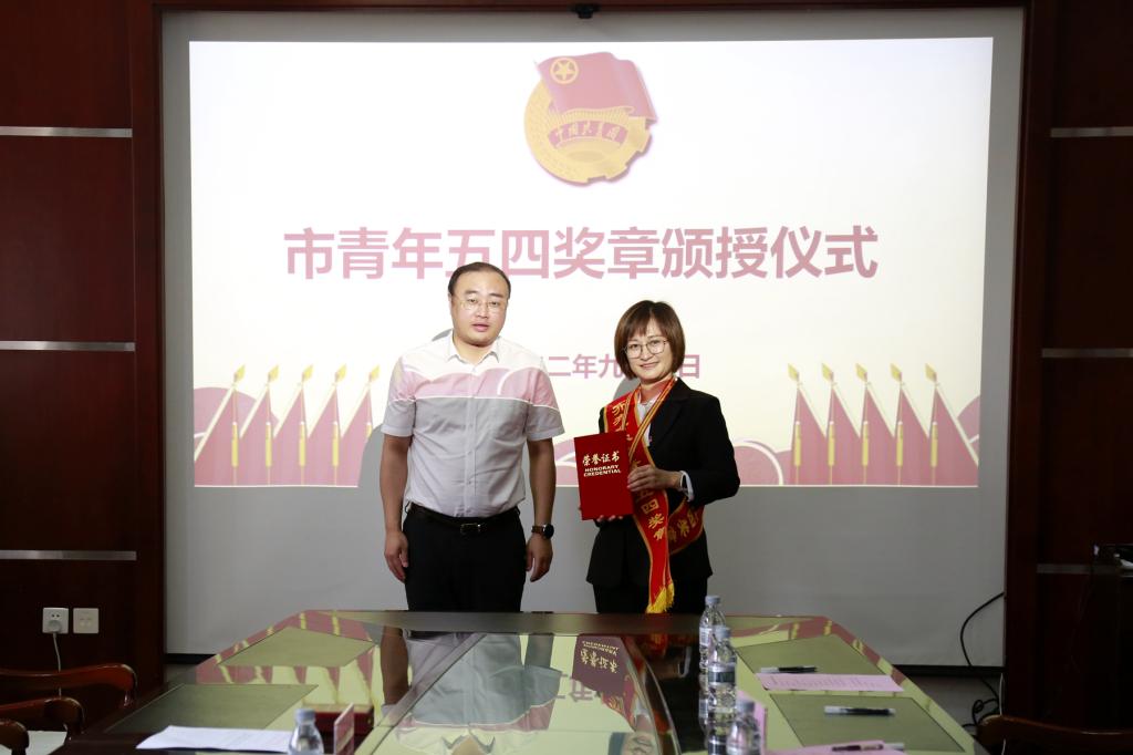 仪式上,葛弘博为第十届“齐齐哈尔市青年五四奖章”获得者、万象城生命科学与农林学院李珊珊教授颁授奖章,并向她表示诚挚祝贺,希望她在今后工作中为鹤城广大青年作出表率,为齐齐哈尔市经济社会发展作出更大贡献。