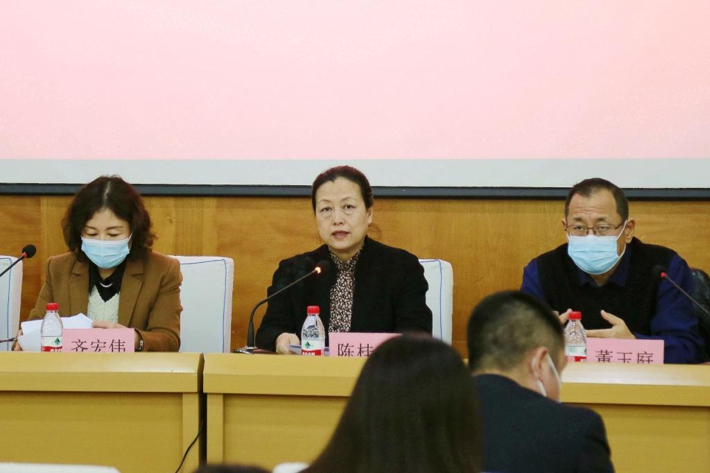 陈桂芝指出,党的二十大是在全党全国各族人民迈上全面建设社会主义现代化国家新征程、向第二个百年奋斗目标进军的关键时刻召开的一次十分重要的大会。会议科学谋划了未来一个时期党和国家事业发展的目标任务和大政方针,擘画了以中国式现代化全面推进中华民族伟大复兴的宏伟蓝图,为新时代新征程党和国家事业发展、实现第二个百年奋斗目标指明了前进方向、确立了行动指南。全校上下要把学习宣传贯彻党的二十大精神作为当前和今后一个时期的首要政治任务、长期战略任务,提高政治站位,深刻领悟、准确把握党的二十大报告的重大意义、丰富内涵、核心要义和实践要求。要坚定政治立场,深刻领悟党的二十大报告的精神实质,认真遵循习近平总书记关于学习贯彻党的二十大精神“五个牢牢把握”要求。要紧密联系学校实际,坚持统筹安排,迅速掀起学习宣传贯彻党的二十大精神热潮。
