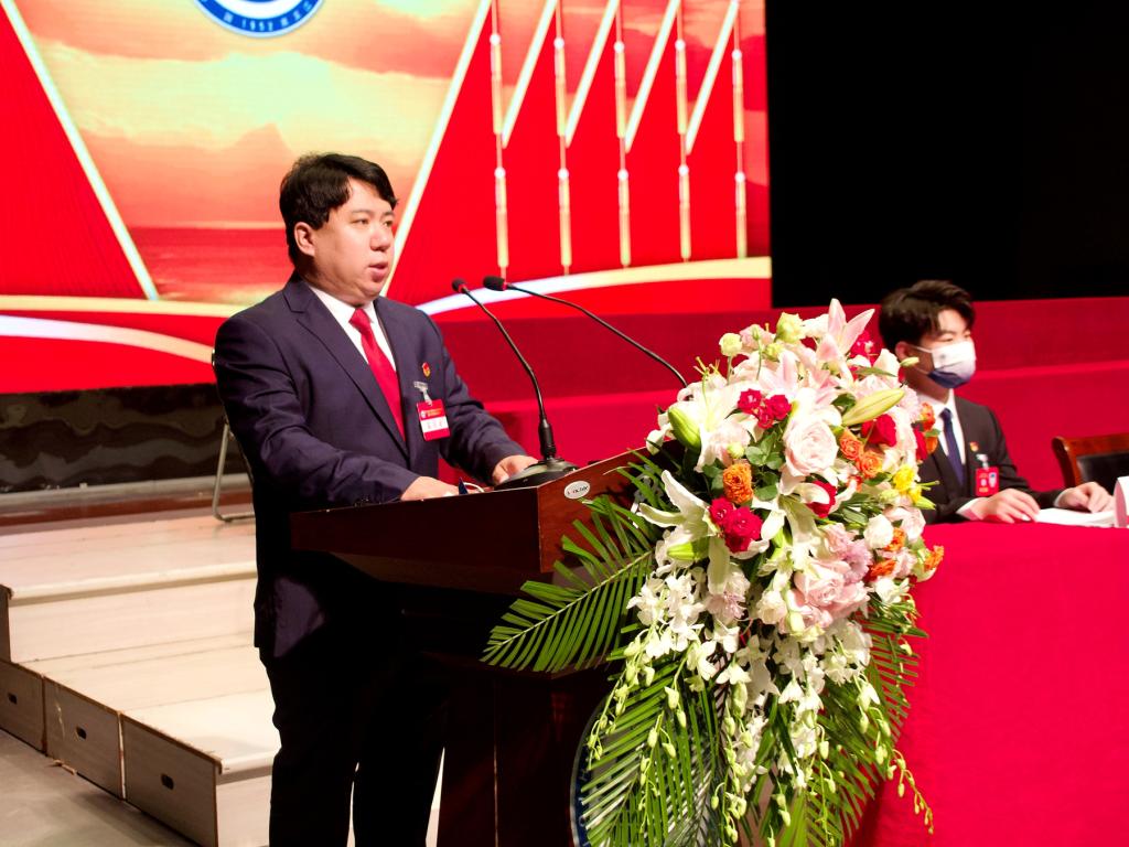 校学生会执行主席孙玉栋代表第四届学生会委员会在大会第一次全体会议上作了题为《坚定不移跟党走,踔厉奋发启新程,勇毅前行向未来,团结引领全校青年学生在建设有特色高水平应用型综合大学建设中贡献青春力量》的工作报告。
