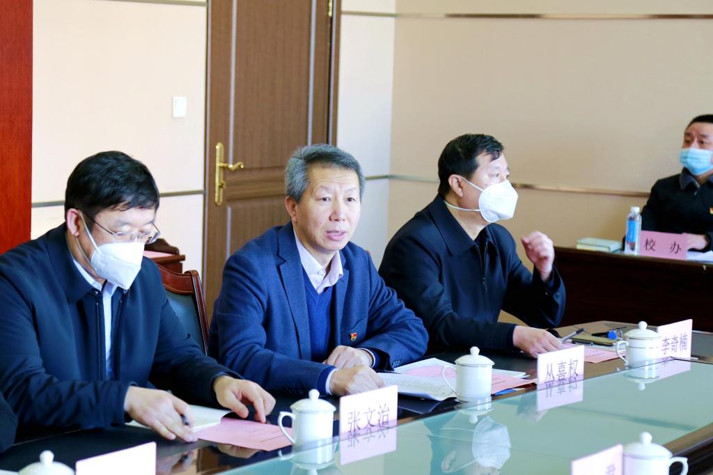 实地踏查后,姜同河一行来到学校办公楼504会议室,听取了学校春季学期开学准备工作汇报,校领导和相关部门负责人参加会议。