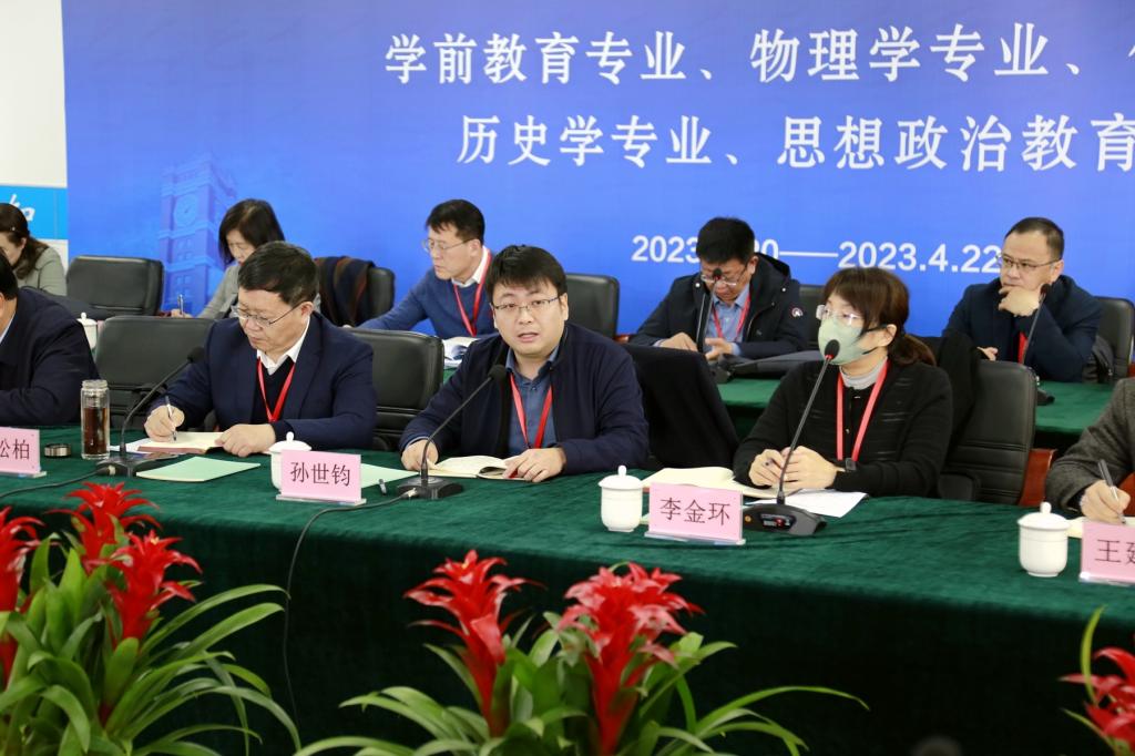 4月20日上午,专家组见面会在东区图书馆八楼报告厅举行。本次认证专家组联合大组长兼学前教育专业专家组组长齐鲁师范学院林松柏教授及成员河北师范大学龚蓉副教授、鞍山师范学院刘岩教授、浑南区奉天首府幼儿园贾洪扬副教授;物理学专业认证专家组组长东北师范大学李金环教授及成员盐城师范学院陈玉祥教授、四川师范大学周晓林教授、牡丹江市教育研究院郭世杰研究员;化学专业认证专家组组长河南师范大学陈广文教授及成员浙江师范大学赵雷洪教授、内蒙古师范大学王喜贵教授、江苏省新海高级中学正高级教师韩金山;历史学专业认证专家组组长浙江工商大学施建祥教授及成员华中师范大学胡中波教授、内蒙古民族大学田明教授、佳木斯市教育局于庆澎研究员;思想政治教育专业认证专家组组长华南师范大学王建平研究员及成员北华大学刘卫东教授、嘉兴学院丁连生教授、佳木斯市第一中学朱可苏特级教师;项目管理员黑龙江省教育评估院张立明老师出席会议。省教育厅高教处处长孙世钧,高教评估观察员黑龙江中医药大学基础医学院殷越教授出席会议。