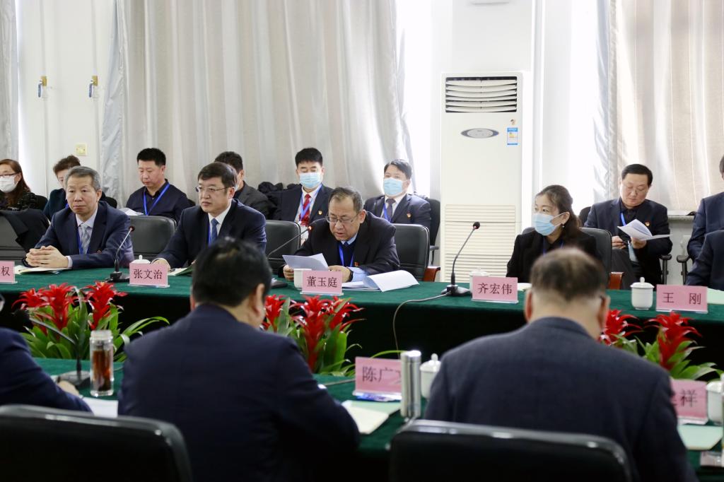 校领导董玉庭、齐宏伟、张文治、王刚、丛喜权、张树军、李奇楠、陶佰睿,相关职能部门负责人,各学院院长,被认证专业所在学院领导班子成员、专业负责人参加会议。会议第一阶段由副校长李奇楠主持。