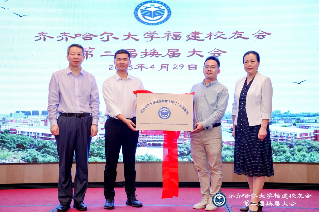 走访调研过程中,陈桂芝一行应邀出席福建校友会换届大会并为齐大成果转化(厦门)示范基地揭牌。她代表学校向福建校友会的成功换届表示祝贺,对福建校友会近年来开展的工作给予充分肯定,鼓励新一届理事会在新起点勇担新使命,展示新风采,在助力校友成长、支持母校发展、服务地区繁荣方面再创佳绩。她还代表学校向福建校友会赠送了《万象城AWC官方网站赋》竹简,同时欢迎福建校友常回母校看看,再叙师生情谊、共谋学校发展。