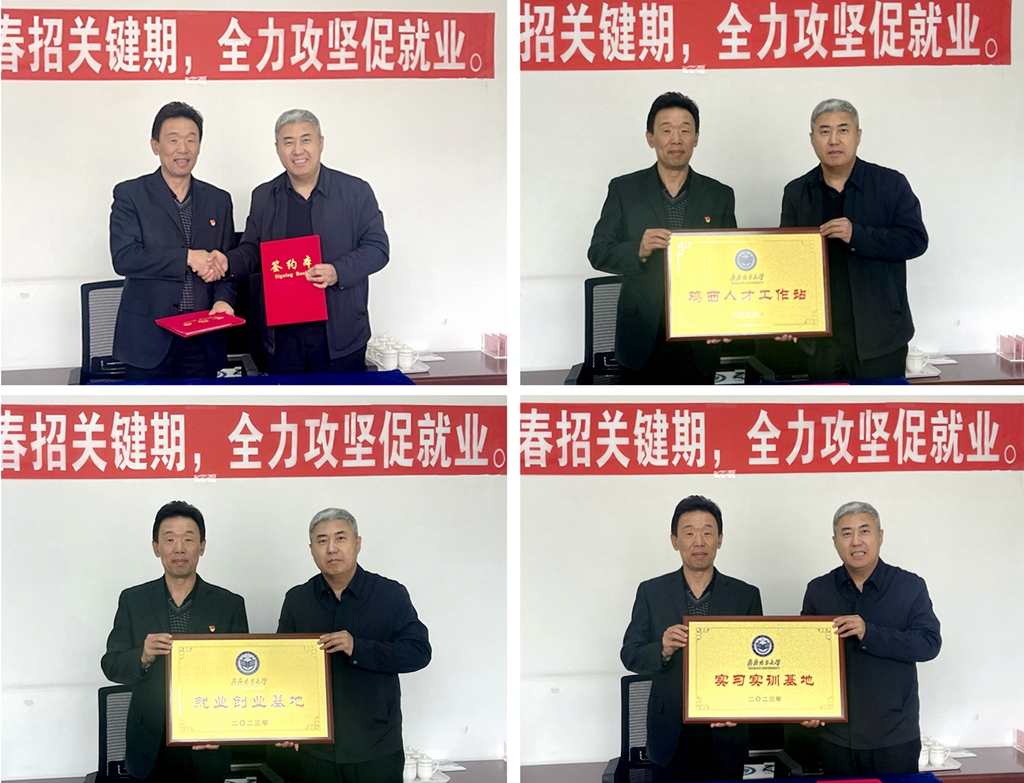 会上,双方签订了校地人才合作协议,并举行了“鸡西人才工作站”“实习实训基地”“就业创业基地”的授牌仪式。