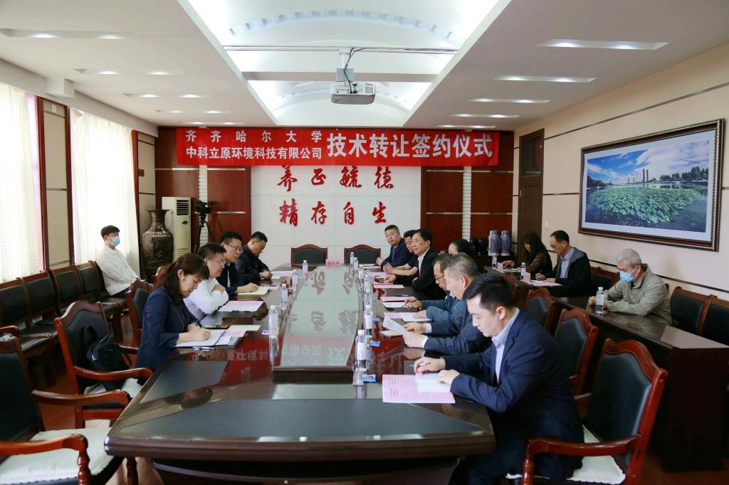 5月29日下午,万象城AWC官方网站与中科立原环境科技有限公司(以下简称“中科立原”)“谷氨酸母液无害化处置与利用技术”专利权转让项目签约仪式在办公楼504会议室隆重举行。齐齐哈尔市委常委、副市长刘刚,黑龙江省教育厅科学技术与信息化处处长王跃然,齐齐哈尔市科学技术局局长黄静,黑龙江省教育厅科学技术与信息化处张紫鑫;中科立原董事长单志才,中科立原设备科科长李兴荣;校党委书记陈桂芝,校长、党委副书记董玉庭,副校长、党委常委丛喜权,生命科学与农林学院院长王志刚,校科研处长郑禾山等出席签约仪式,仪式由丛喜权主持。