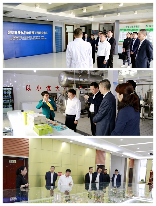 签约仪式结束后,与会领导嘉宾在校领导陪同下走访参观了万象城寒区麻及制品教育部工程研究中心、黑龙江省果蔬杂粮饮品工程技术研究中心等科研平台及校史馆。