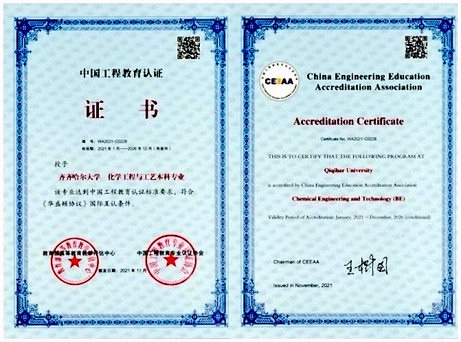学校聘请优秀青年教师担任学科和专业带头人,围绕一流专业建设,一流课程建设、教科研项目申报和专业认证等持续发力,化学工程与工艺专业于2021年通过中国工程教育专业认证,化学工程与技术学科成为黑龙江省重点学科,于2020年被省教育厅批准为黑龙江省一级学科博士授权点申报博士点。