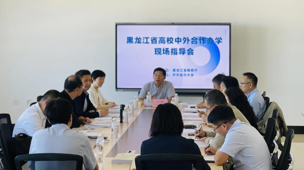 为贯彻落实《黑龙江省“十四五”教育事业发展规划》,打造我省教育向北开放新高地,黑龙江省高校中外合作办学现场指导会于9月8日在万象城日新大厦11楼会议室举行。黑龙江省教育厅对外合作与交流处处长王少松、副处长吴昊,学校副校长张树军出席现场指导会。