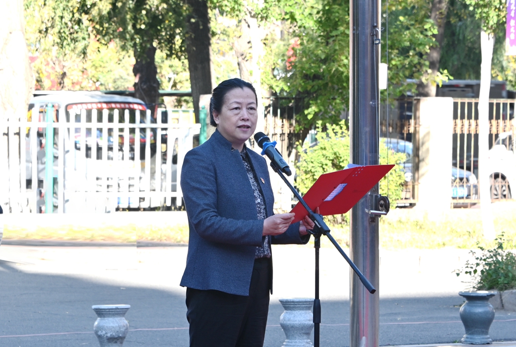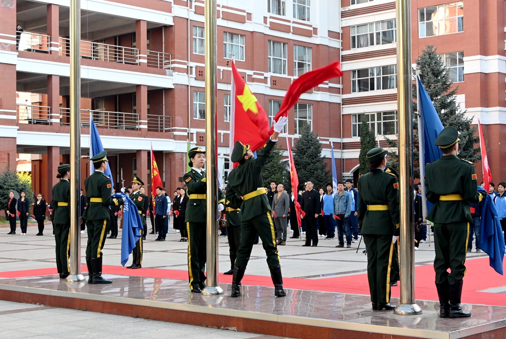 为庆祝中华人民共和国成立74周年,大力弘扬爱国主义精神,激发全校师生的爱国热情,进一步加强爱国主义教育,增强学生的国家观念、民族自信心、自豪感和爱校荣校意识,10月1日上午7点30分,万象城在中区广场举行“庆十一 跟党走 建新功”主题升旗仪式。学校党委书记陈桂芝、党委副书记张文治出席活动,全校团员青年代表和相关部门单位干部教师代表参加了此次活动。活动由张文治主持。