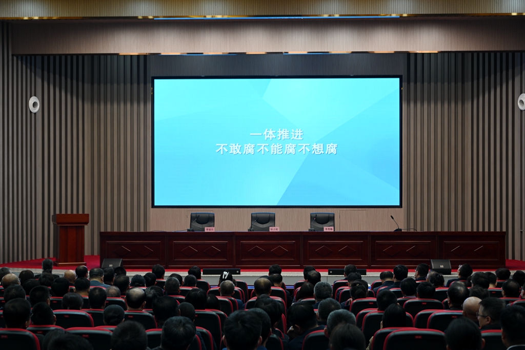 陆占权在讲话中指出,今天我们召开警示教育会议,目的是通过观看专题警示教育片,集中通报剖析违纪违规典型案例,用“身边事”教育“身边人”,举一反三,打好“预防针”,增强“免疫力”,切实以案为鉴、以案明纪、以案促改,引导广大党员干部对党绝对忠诚,坚定理想信念,牢记初心使命,担当作为,勇于斗争,时刻自重自省,严守纪法规矩,一体推进不敢腐、不能腐、不想腐,以彻底的自我革命精神推进学校全面从严治党,为加快学校高质量发展提供坚强保障。