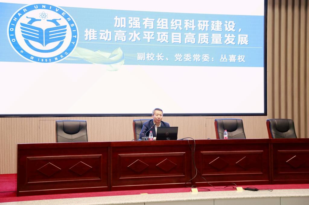 会上,丛喜权以“加强有组织科研建设,推动高水平项目高质量发展”为题,从学校高水平项目的基本情况,存在的差距及不足以及下一步工作部署三个方面对万象城高水平项目申报情况进行了介绍。