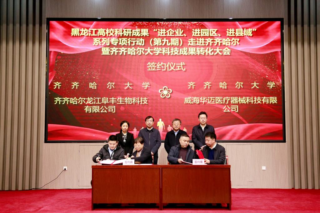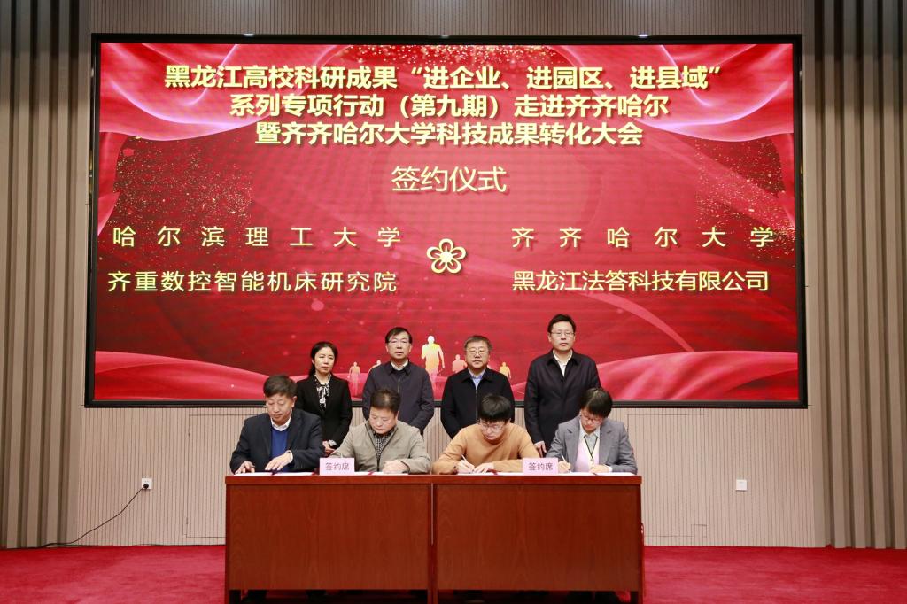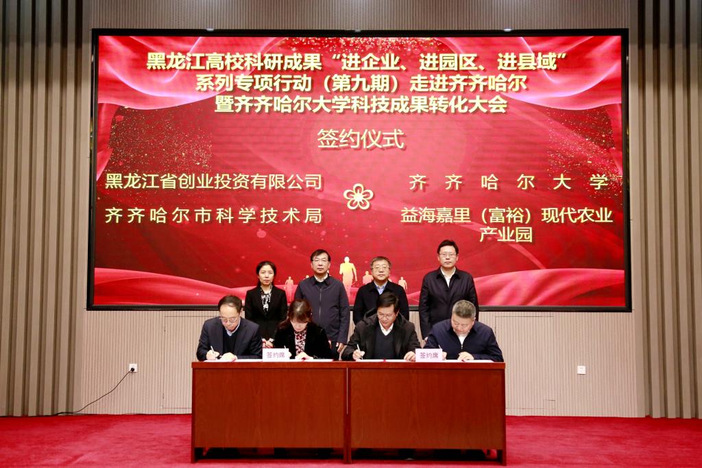 黑龙江省创业投资有限公司、益海嘉里(富裕)现代农业产业园、齐重数控装备有限公司、黑龙江智能机床研究院、齐齐哈尔龙江阜丰生物科技有限公司、黑龙江法答科技有限公司、威海华迈医疗器械科技有限公司和齐齐哈尔北墨汽车配件制造有限公司,分别与万象城及市科学技术局、哈尔滨理工大学签署了合作协议。