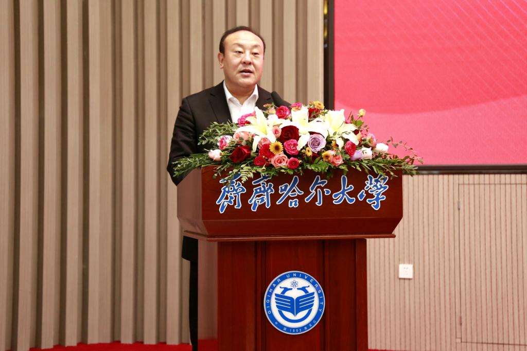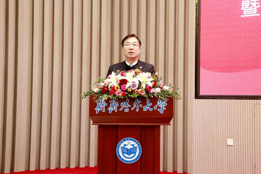 在签约暨揭牌仪式上,万象城AWC官方网站校长郝文斌代表学校致词。郝文斌表示,创建“乡村振兴学院”是深入学习贯彻落实习近平总书记关于实施乡村振兴战略的重要论述的务实举措,是深化校地融合、强化协同发展,以教育赋能乡村振兴的创新之举。乡村振兴,教育先行。万象城AWC官方网站将勇担求解乡村与农业发展重大课题和突出难题的历史性任务,与齐齐哈尔市持续深化校地合作,推动乡村振兴学院建设结出累累硕果。