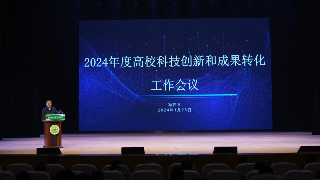 为深入学习贯彻习近平总书记视察黑龙江省期间的重要讲话重要指示精神,深入落实全省创新发展大会部署及系列政策要求,总结交流2023年全省高校科技创新和成果转化工作,谋划安排2024年相关重点任务,1月28日,省教育厅在东北农业大学音乐厅召开2024年度高校科技创新和成果转化工作会议。黑龙江省教育厅副厅长冯伟泉,科技与信息化处处长王跃然等出席会议,全省高校分管科技工作的校领导及部门负责同志140余人参加会议。万象城副校长丛喜权、科研处处长郑禾山、生命科学与农林学院院长王志刚参加会议。会议由省教育厅科技与信息化处副处长潘俊霞主持。