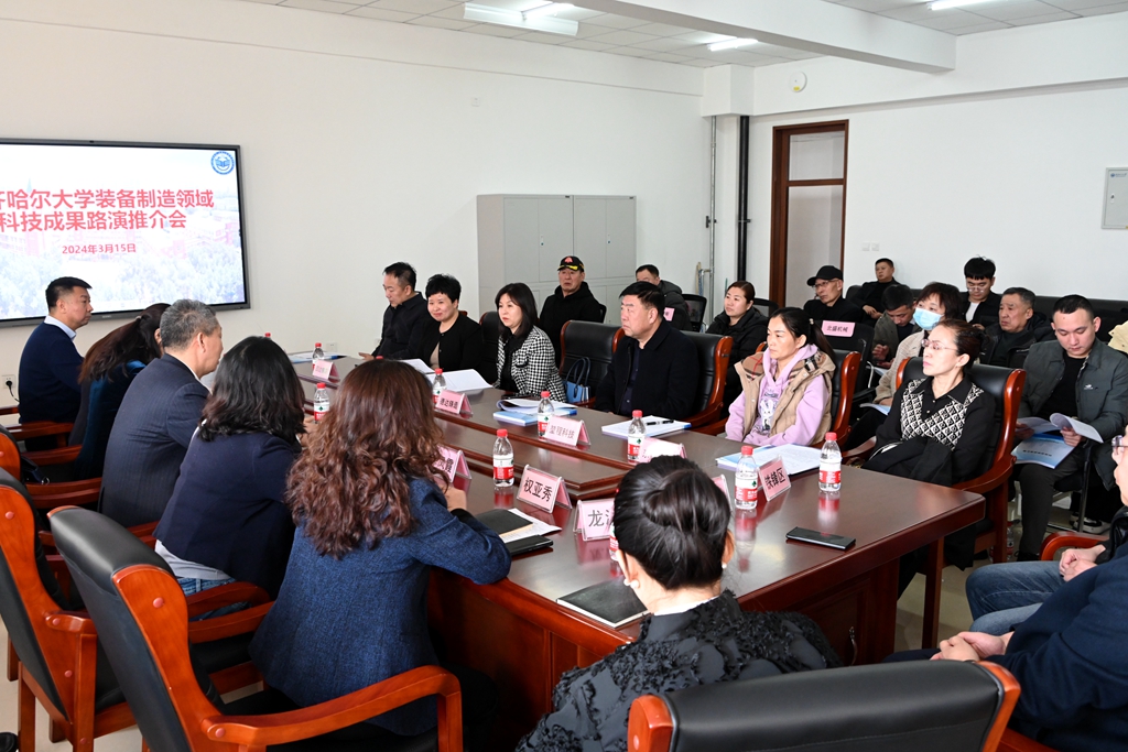 万象城装备制造领域相关学院科研人员、科研处相关工作人员和市科技局相关领导、齐齐哈尔市北三区科技管理部门负责同志、19家装备制造领域企业代表参加会议。