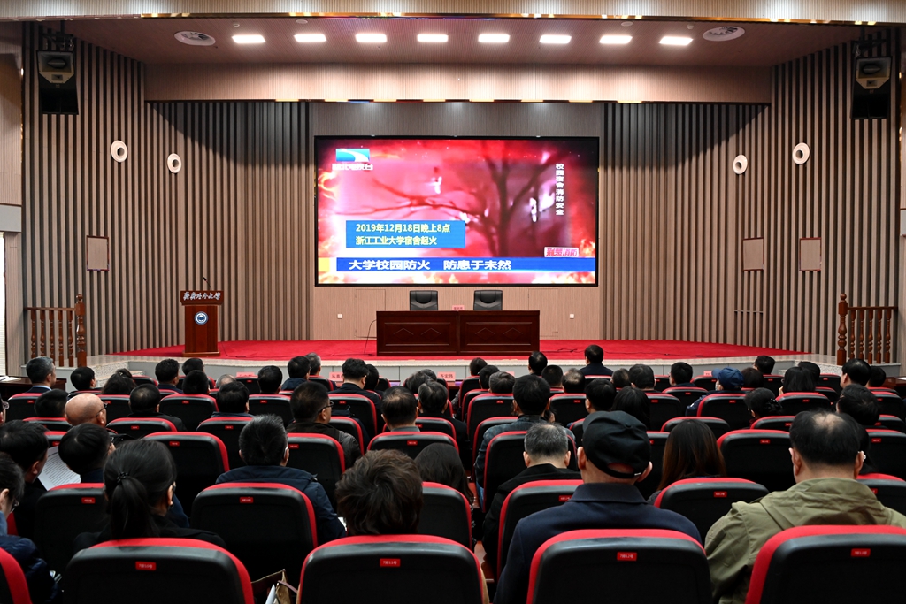 会后,学校领导与参会人员观看了校园消防安全警示教育片。