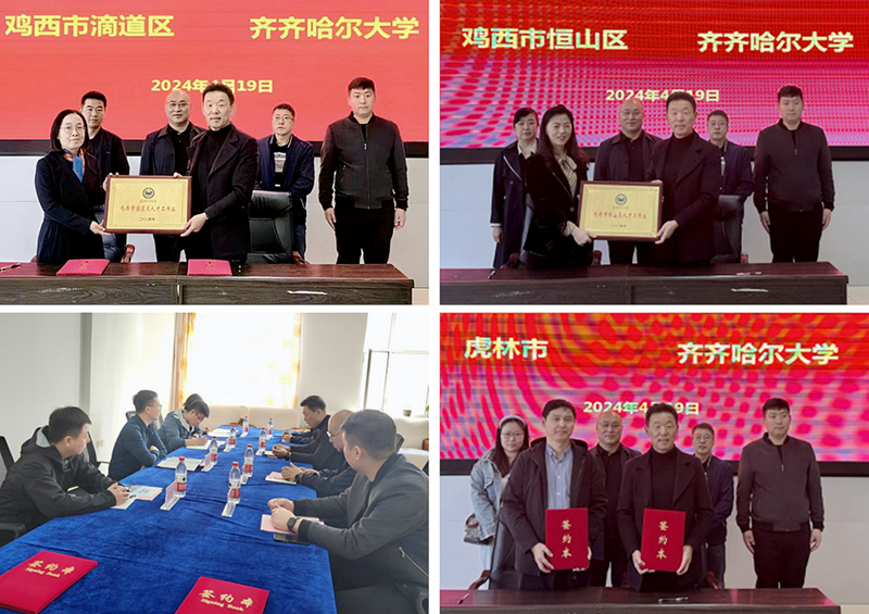 此前,学校分别与鸡西市滴道区、鸡西市恒山区、绥化市、虎林市开展校地合作洽谈会并签署合作框架协议,并分别授予实习实训基地、就业创业基地、人才工作站牌匾。