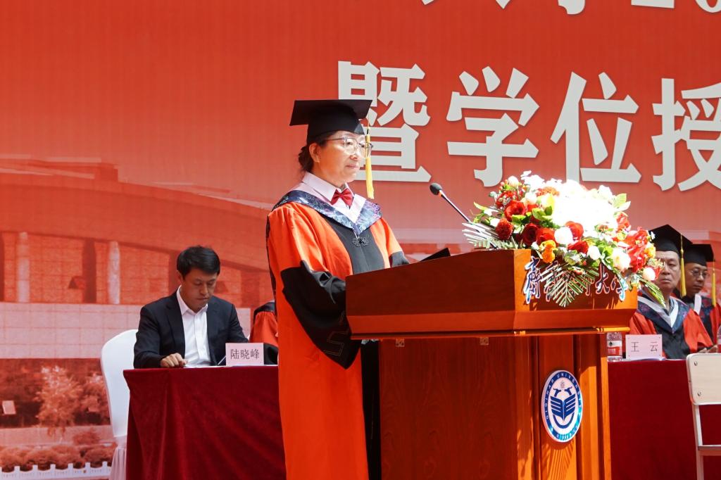 教师代表、文学与历史文化学院(新闻传播学院)李秀莲教授为同学们送上真挚祝福。