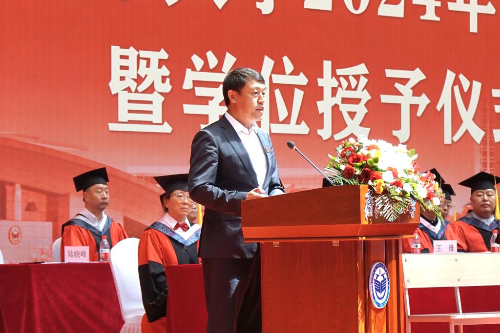 党委副书记齐宏伟宣读学校关于表彰2024届研究生优秀毕业生和本科优秀毕业生的决定。