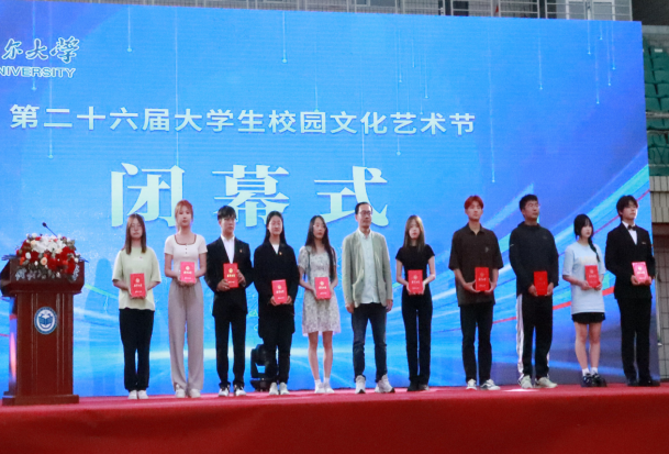 闭幕式上,学生工作部(学生处)部(处)长杜海权、校团委书记罗霄,研究生部党委书记、主任荆涛分别宣读了第二十六届大学生校园文化艺术节校级活动获奖名单、优秀组织奖和突出贡献奖名单和学校亚洲冬季运动会校园冬梦大使名单。