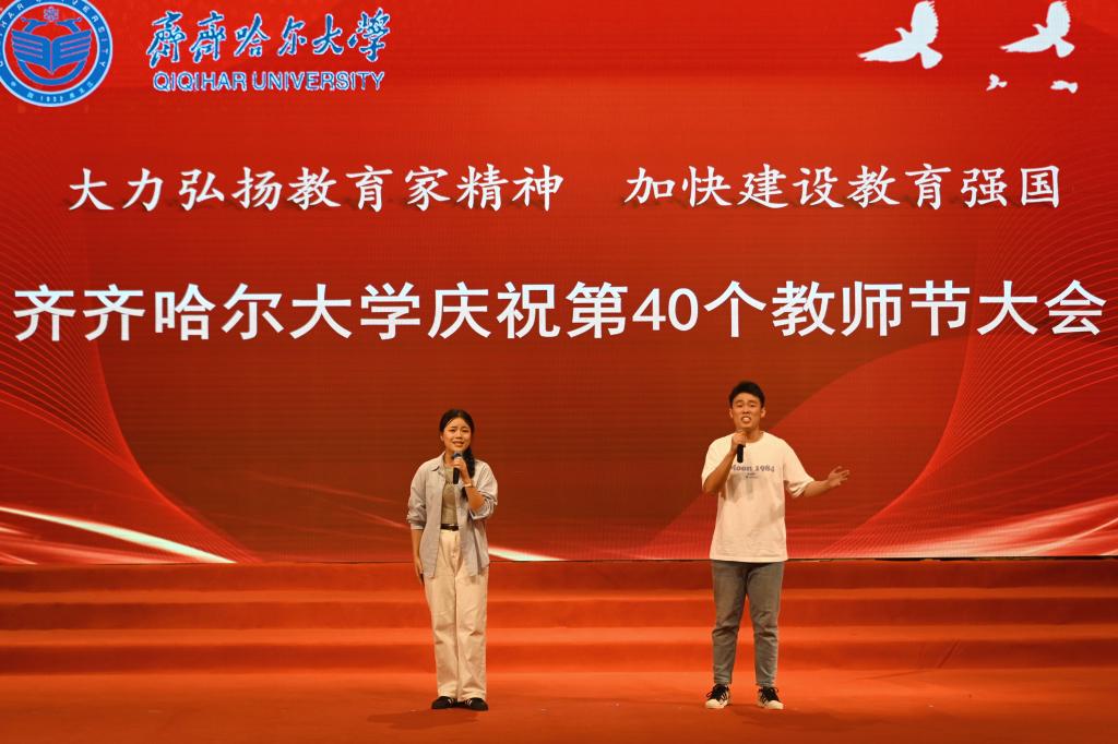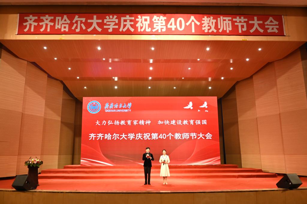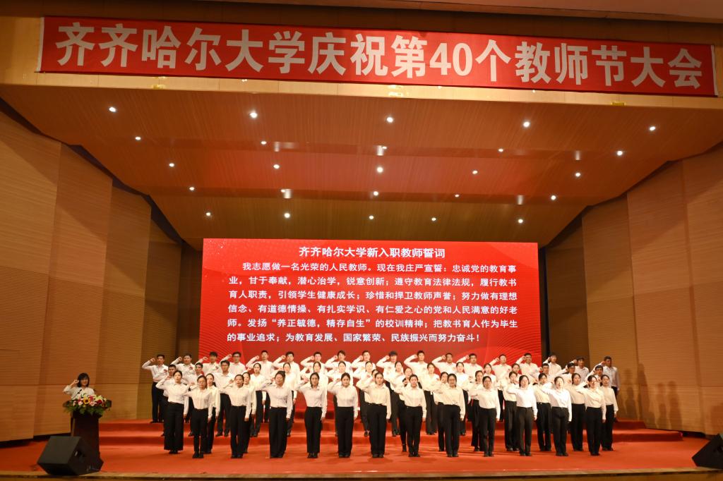 郝文斌强调,学校在70余年办学历程中形成的“大爱、大道、大学”的校风,“为人、为学、为师”的教风,“致知、致用、致远”的学风,是引领和激励一代代齐大人勇毅前行的精神力量。从1985年设立第一个教师节的40年来,万象城AWC官方网站广大教师,扎根北疆、躬耕教坛、砥砺前行、善作善成,用满腔热血和辛勤汗水书写了感人至深、催人奋进的教育篇章。新时代以来,万象城教师争做教学能手、科研骨干、育人模范、师德标兵,在为党育人、为国育才事业中成为优秀榜样,成为地方经济建设的重要推动力。正是在这样的“大先生”精神品格引领感召下,齐大一批批学子毕业后选择从教,在教师岗位上传承着“养正毓德、精存自生”的校训精神,一批批优秀学子,为母校赢得了荣誉尊严,“齐大人”的身份永远与他们相随相依。