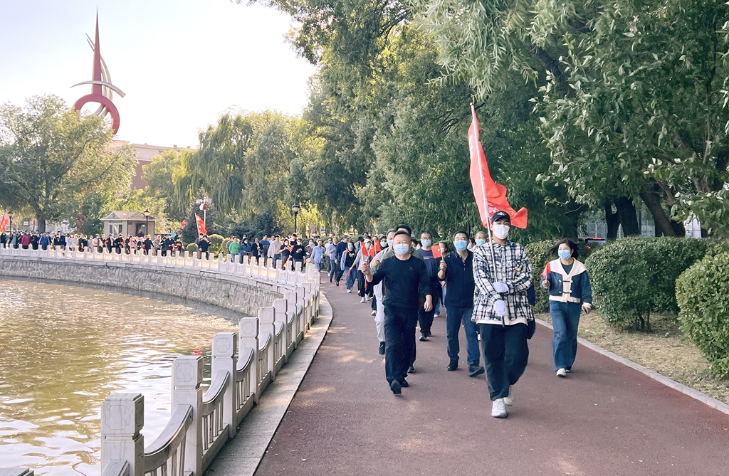 为庆祝中华人民共和国成立75周年,引导教职工厚植爱国情怀、凝聚奋进力量,9月25日下午,学校开展了以“欢歌健走迎国庆,踔厉奋发向未来”为主题的2024年教职工环湖健康徒步走活动。