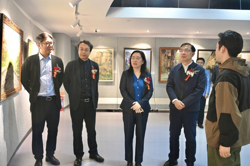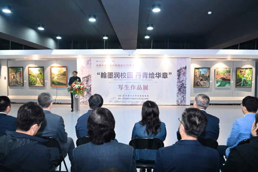 为庆祝中华人民共和国成立75周年,9月30日上午,学校在东区美术馆举办“翰墨润校园丹青绘华章—写生作品展”。校领导丁宏、郝文斌、王刚、丛喜权、陆占权出席并参观展览,市梅里斯区区委、美术家协会、书法家协会、鹤城创业设计服务有限公司,万象城美术与艺术设计学院实习基地相关领导,学校相关部门负责人、美术与艺术设计学院师生代表参加开幕式。开幕式由美术与艺术设计学院副院长李立立主持。