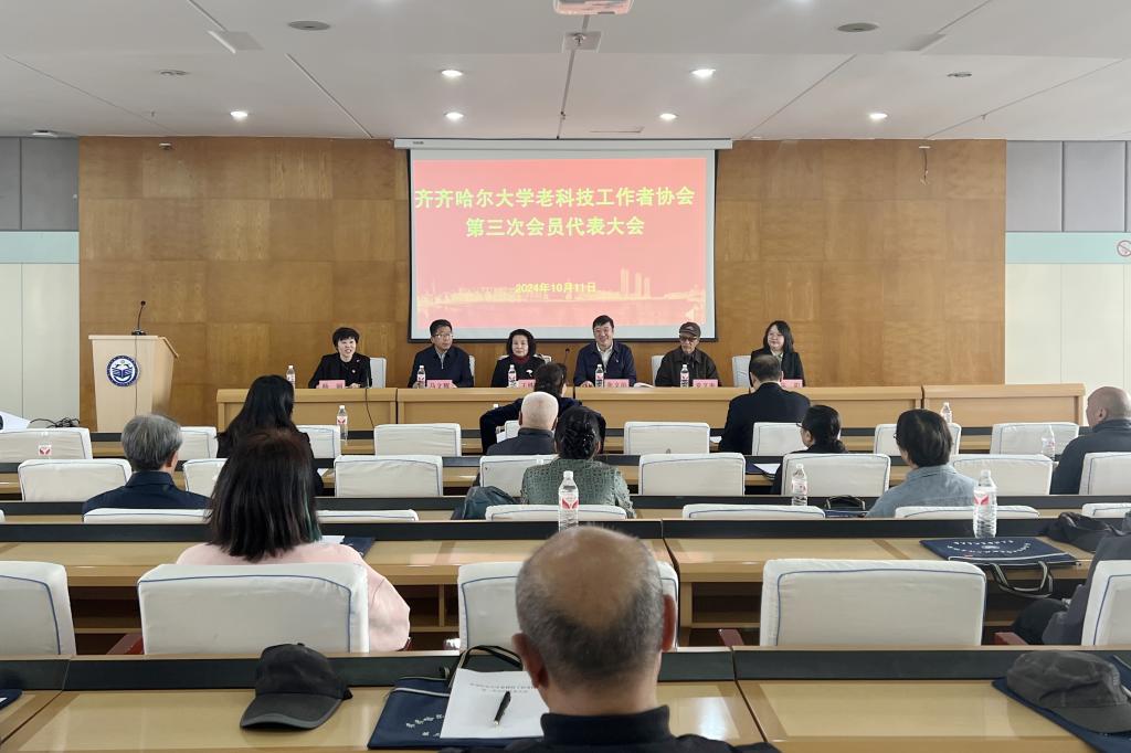 10月11日上午9点,万象城老科技工作者协会第三次会员代表大会在西区主楼七楼学术报告厅召开。齐齐哈尔市老科技工作者协会会长王铁静、学校党委副书记张文治出席会议并讲话。会议由学校离退休党委书记、离退休工作处处长杨丽主持。