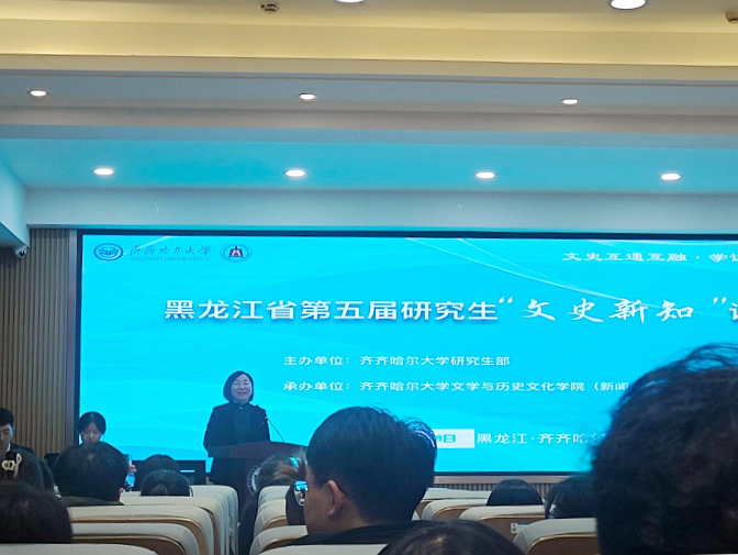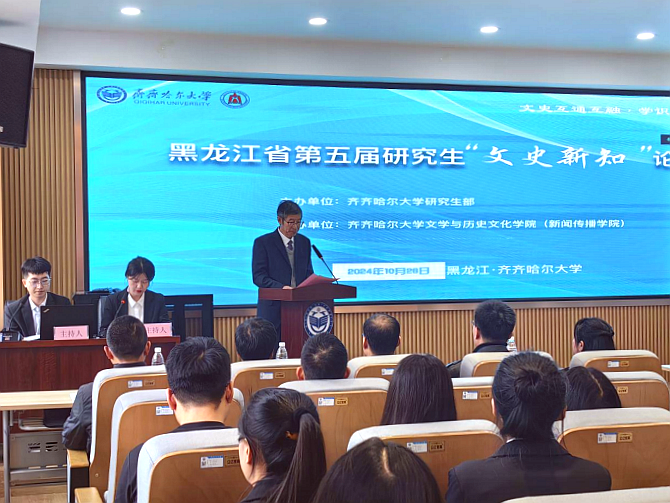 张树军在致辞中介绍了学校发展基本情况与研究生培养概况,对文学与历史文化学院(新闻传播学院)所举办的历届黑龙江省研究生“文史新知”论坛在促进省内各高校和科研院(所)文史学科之间的学术交流、革新研究生培养模式、提高研究生培养质量等方面的贡献进行了肯定。他指出,黑龙江省研究生“文史新知”论坛自第一届举办后的十年来,从稚嫩走向成熟,从摸索走向规范,参会论文在数量与质量方面均有了极大提升,影响力与美誉度日益扩大,已成为万象城面向全省研究生打造的教育品牌和学术名片,成为全省研究生学子欣然以待的一大盛事。有利地推动了文史类研究生树立读书思考、撰写学术论文的强烈意识,形成“博文通史,学术为业”的坚定志向。