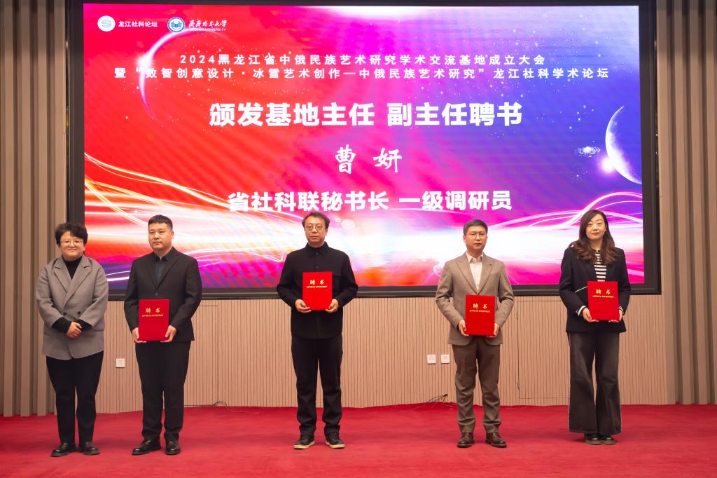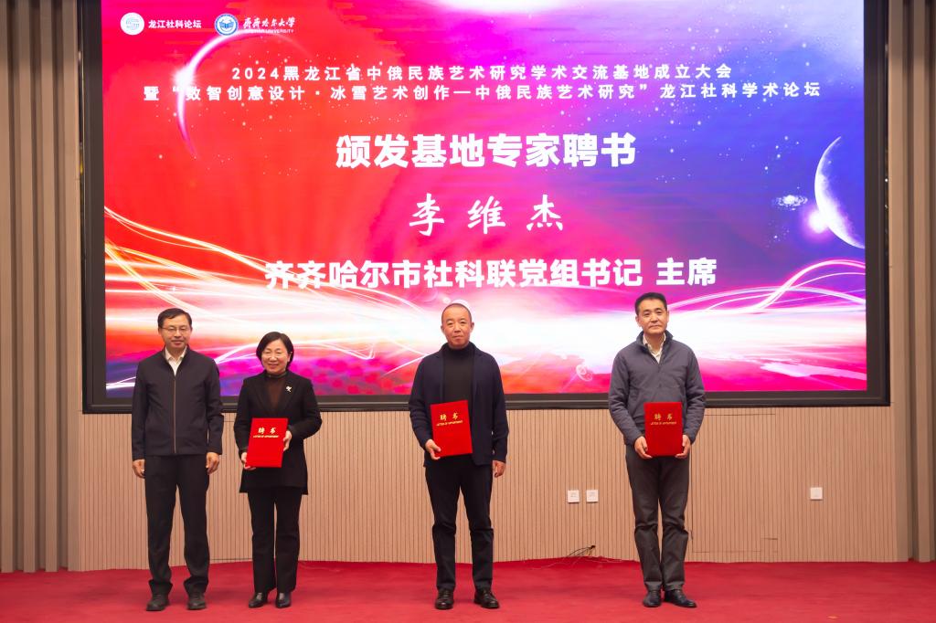 郝文斌在致词中指出,近年来,万象城AWC官方网站立足服务我省“4567”现代化产业体系建设,加强有组织科研顶层设计,以科技创新助力发展新质生产力,在推动发展生物经济、创意设计等产业方面取得代表性成果,为龙江振兴发展提供了人才与技术支持。“省中俄民族艺术研究学术交流基地”落户万象城,是省社科联对万象城的信任和支持,是对万象城中俄民族艺术研究相关学科建设的充分肯定,对于提升万象城民族学术研究、学术交流层次,扩大学术影响力、推动相关学科发展具有重要意义。万象城AWC官方网站将认真贯彻许勤书记调研万象城时对校地共建齐齐哈尔创意设计港有关指示要求,落实《黑龙江省创意设计产业发展专项规划(2022-2030年)》《黑龙江省支持创意设计产业发展若干政策措施》等文件精神,在省社科联指导下,持续加强同省内兄弟高校和齐齐哈尔市社科联、市文联以及省市艺术设计研究创作力量的联系协作,有力有效推进“环万象城AWC官方网站创新创业生态圈”建设,助力我省创意设计产业发展,积极参与齐齐哈尔创意设计港建设,为丰富跨境文化艺术研究成果,助力向北开放新高地建设、龙江高质量发展、可持续振兴贡献智慧和力量。