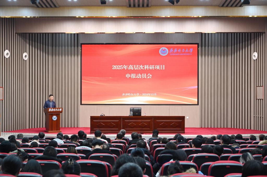 为持续提升学校国家级省部级等科研项目申报质量,12月5日下午,学校在日新大厦四楼学术报告厅召开了2025年高层次科研项目申报动员会。校长郝文斌、副校长丛喜权出席会议,各学院院长、科研副院长、教师代表及科研处全体工作人员参加此次动员会。会议由科研处处长郑禾山主持。